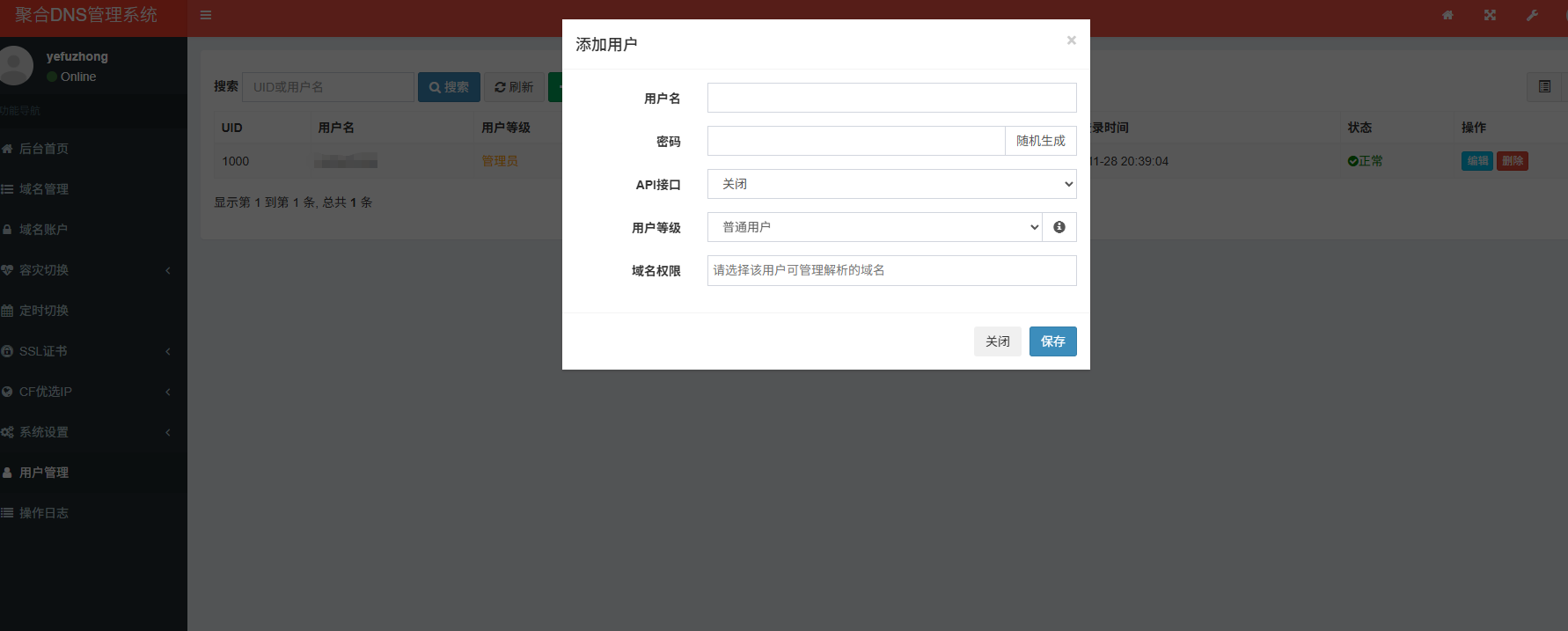 多用户管理,可为每个用户可分配不同的域名解析权限;