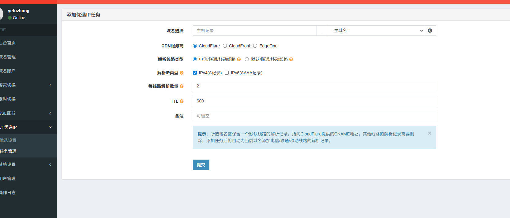 CF优选IP功能,添加优选IP任务