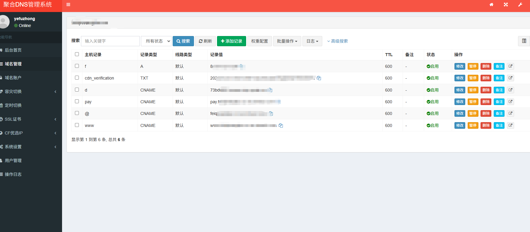 域名DNS解析管理,支持批量操作
