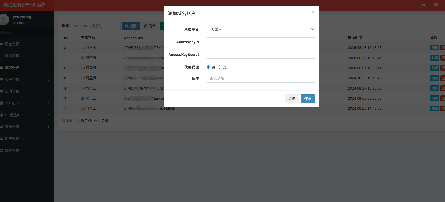 添加域名账户