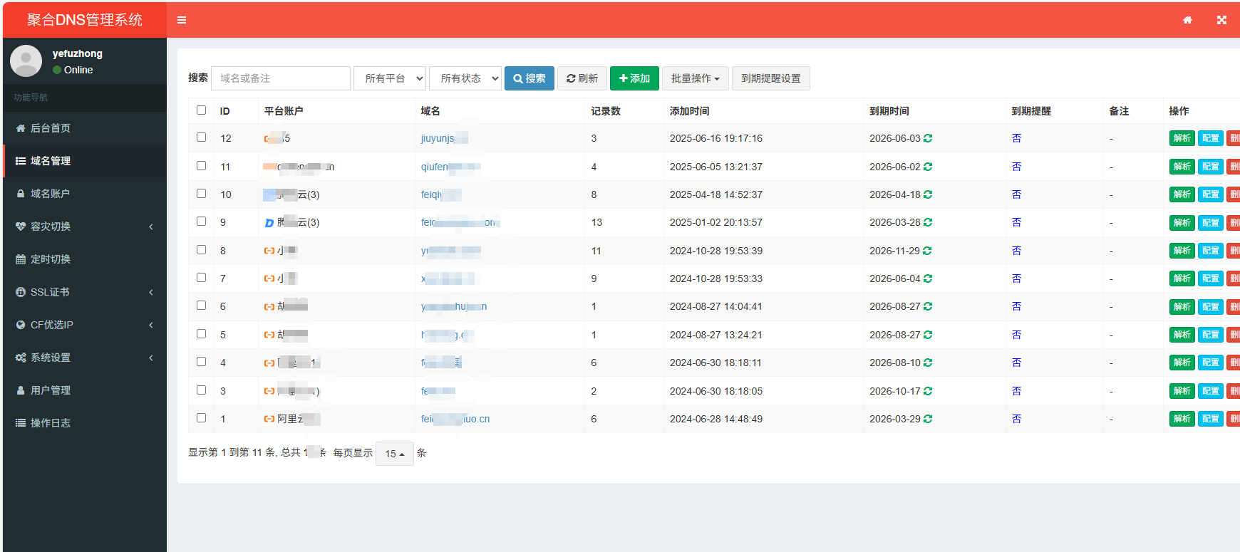 域名管理列表